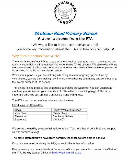 Since joining Wrotham Road I have had many conversations with some of our PTA members and I am now putting out a plea!